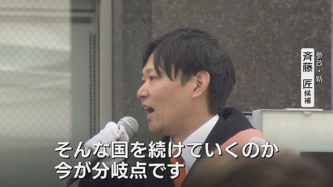 参政・新人の斉藤匠候補。北海道出身で10年前、就職を機に富山県に移住、建築資材のメーカーで技術者として働いてきました。減税と社会保険料の削減を目指すほか、子ども一人あたり月10万円の教育給付金支給など子育て環境を整える政策を訴えます。