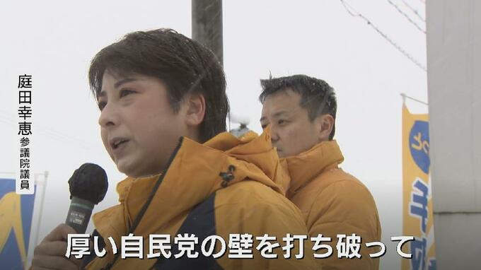 真冬の選挙戦を支えるのは、去年の参院選で「逆転の夏」を掲げ自民現職を破った、庭田幸恵参議院議員。