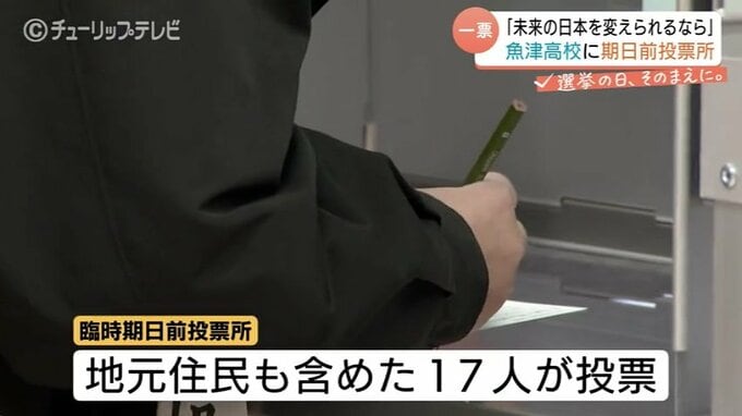 18歳になって選挙権を得た魚津市在住の高校3年生たちが投票に訪れ、地元住民も含めた17人が一票を投じました。