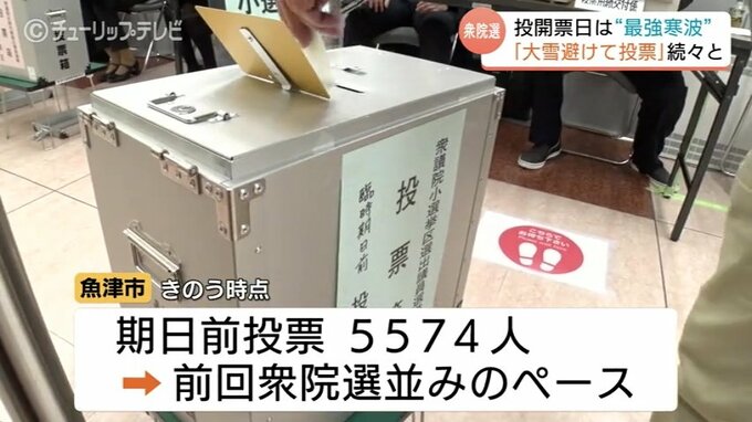魚津市選挙管理委員会によりますと、当初、期日前投票の出足は鈍かったものの、入場券が届き、雪が落ち着いた3日以降、投票者は日に日に増加。