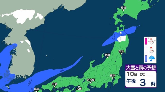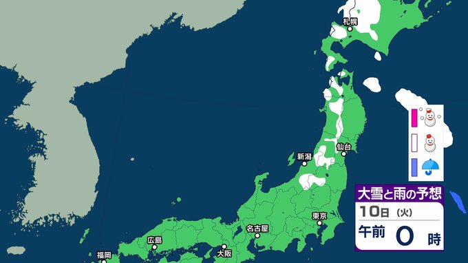 ニュースクリップ 【大雪情報】8日は “警報級” 大雪のおそれ、新潟・富山で最大70cmの降雪予想、交通障害や路面凍結、水道管凍結に厳重警戒を【雪と雨と風のシミュレーション】 2026年2月6日(金) 18:00 10日(火)大雪と雨のシミュレーション