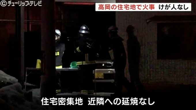 6日夜、富山県高岡市の郊外にある住宅密集地で木造住宅を焼く火事があり1時間40分後に消し止められました。けが人はいませんでした。