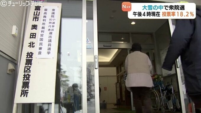 富山県選挙管理委員会によりますと、午後4時現在の小選挙区の投票率は、18.2%で前回の衆院選を7.38ポイント下回っています。
