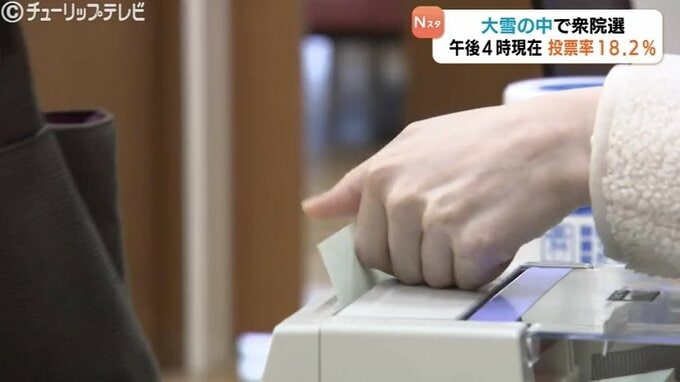 衆議院議員選挙が8日行われています。富山県選挙管理委員会によりますと、県内の午後6時現在の小選挙区の投票率は21.53%で、前回の選挙よりも8.69ポイント下回っています。