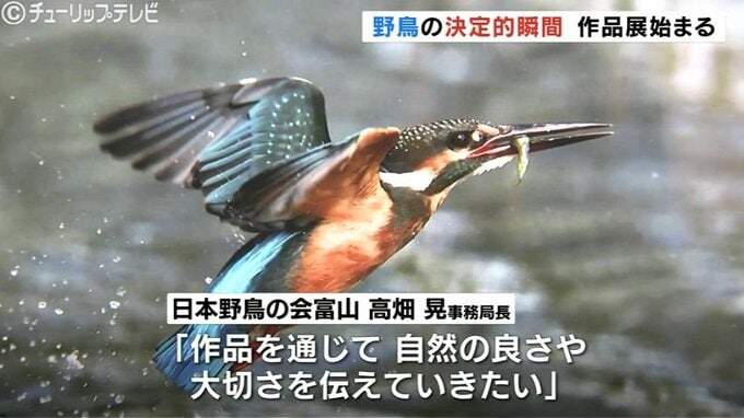 富山市では、13日から野鳥たちの決定的な一瞬をとらえた写真などが並ぶ作品展が始まりました。