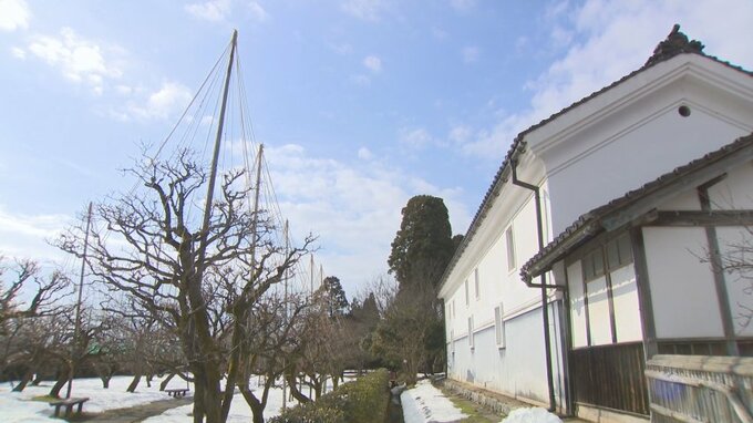 富山市の登録有形文化財「内山邸」で、白梅の開花が始まりました。2月下旬に見頃を迎えるのを前に、園内には早くも春を告げる甘い香りが漂っています。