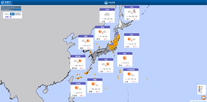 各地の日中の最高気温は3月下旬からとろこによっては4月下旬並みとカレンダーを2か月ほど進めたような陽気となる予想です。