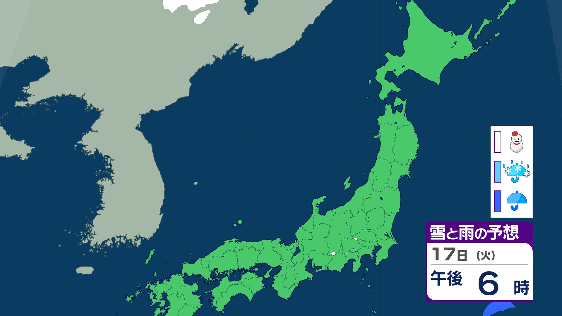 ニュースクリップ 【週間予報】穏やかな晴天は19日まで 22日から23日、日本付近を「気圧の谷」通過 全国的に天気が大きく崩れるおそれ【雪と雨のシミュレーション】 2026年2月16日(月) 11:28 17日(火)の雨と雪のシミュレーション