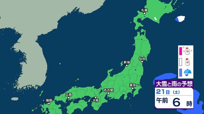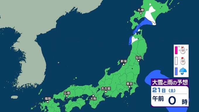 ニュースクリップ 北日本から北陸 “冬の嵐”の見込み 「猛吹雪」のおそれも -39℃前後の非常に強い寒気流れ込む【雪と雨のシミュレーション】 2026年2月17日(火) 11:05 21日(土)雨と雪のシミュレーション
