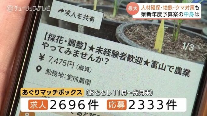 富山県は、新年度からは、すべての業種を対象にスポットワークの人材を求める独自のプラットフォーム立ち上げます。予算として、1350万円を計上しています。