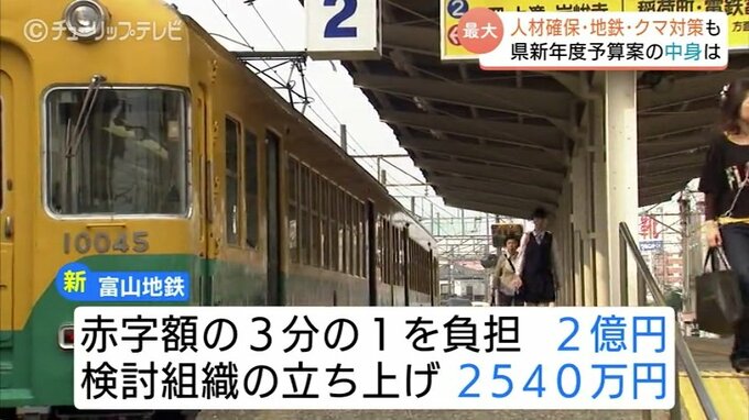 富山県が赤字額の3分の1にあたる2億円を負担するほか、鉄道線の再構築に向けた新たな検討組織の立ち上げに向けて2540万円が計上されました。