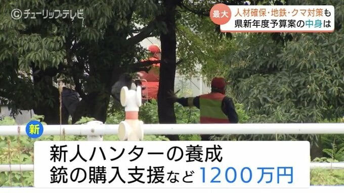 去年、クマが大量出没し新たに「緊急銃猟」も始まったことから新人ハンターの養成や銃の購入支援などに1200万円を計上しています。