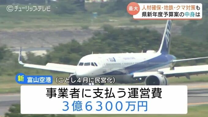 ことし4月から民営化される富山空港については事業者に支払う運営費として3億6300万円が盛り込まれています。