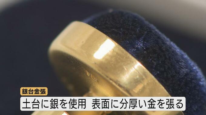 「銀台金張」は土台に「銀」を使用し、表面に分厚い「金」をかぶせる製法です。