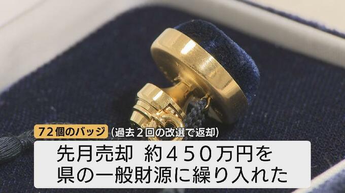 また、配布の方法も貸与から交付に変更。過去2回の改選で返却された72個分のバッジは先月売却し、およそ450万円を県の一般財源に繰り入れたということです。