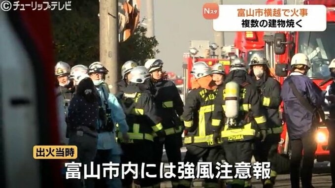 消防による消火活動が行われ、火は、約5時間25分後に、消し止められましたが、この火事で、富山市横越の長治豊一さん(60)の家屋と納屋と車庫、佐々木愛子さん(78)の家屋、武田重治さん(64)の家屋が焼けました。