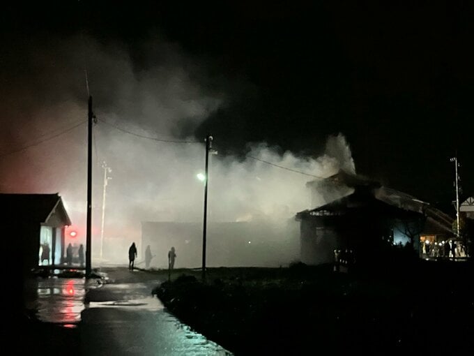 24日夜、富山県上市町で火事があり、消防による消火活動が続いています。