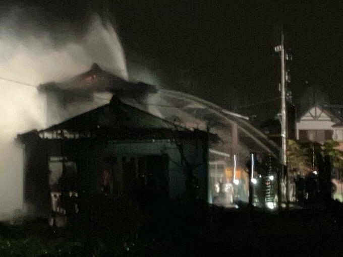 午後10時半現在も、消火活動が続いています。