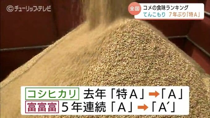 去年「特A」だった県産コシヒカリは「A」に。5年連続「A」評価だった「富富富」は初の「A´」とそれぞれ1つランクを落としました。