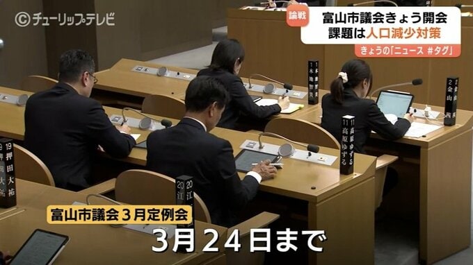 富山市議会3月定例会は、3月24日までで、3月4日からは代表質問が行われます。