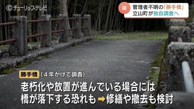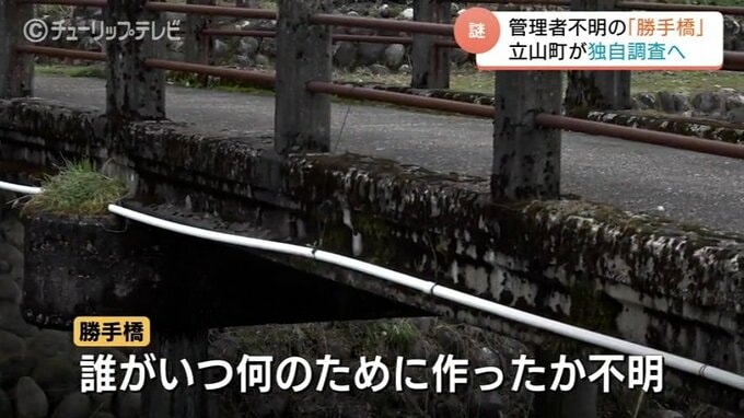 誰が何のために設置したか分からない管理者不明の橋、いわゆる「勝手橋」。立山町はこうした勝手橋が町内に30カ所近くあるとして新年度に独自の調査を行う方針です。