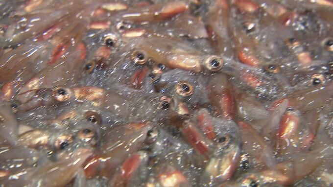 ▼漁業調査船「立山丸」による2月後半の中層トロール調査では、ホタルイカが採集されました。過去の傾向から、採集されなかった場合は不漁となるため、採集された今年は一定の漁獲が見込まれること。