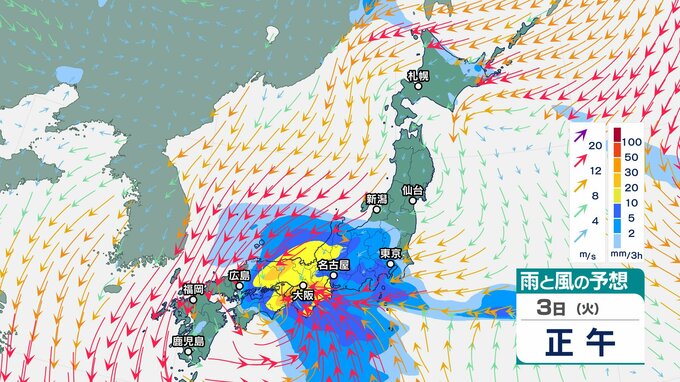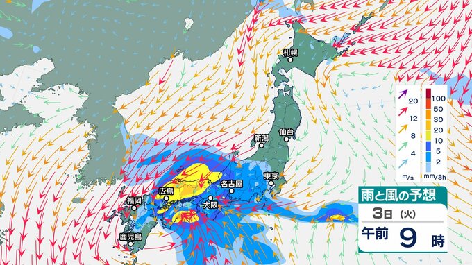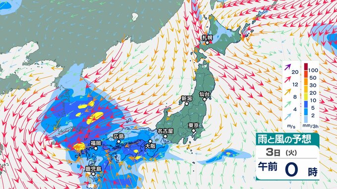 ニュースクリップ 3月上旬は低気圧が発達、周期的な雨に注意…3日~4日は南岸低気圧が通過 5日は束の間の晴天か【雨と風のシミュレーション】 2026年2月28日(土) 14:00 国内 3月3日(火)雨と風のシミュレーション