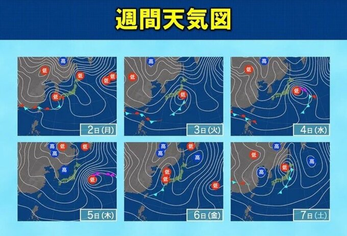 気象庁によりますと、日本の東を進む低気圧が3月1日(日)にかけて北上しながら急速に発達し、2日(月)には暴風警報級の勢力で千島近海に進む見込みです。また、前線が小笠原諸島付近を通過するため、同諸島では土砂災害、落雷、突風、急な強い雨に注意が必要です。