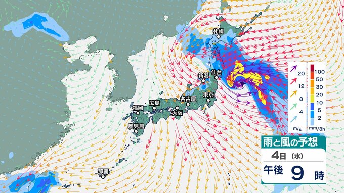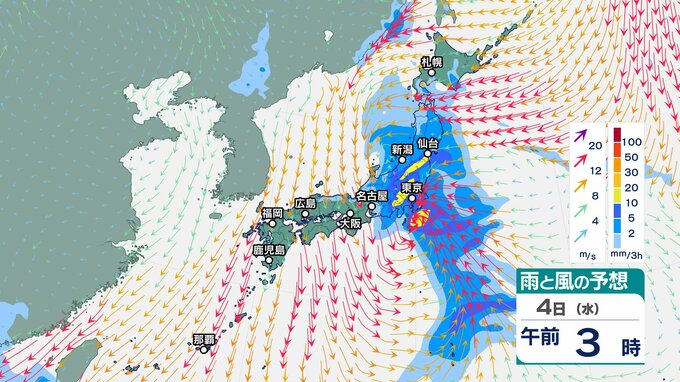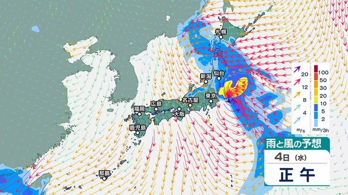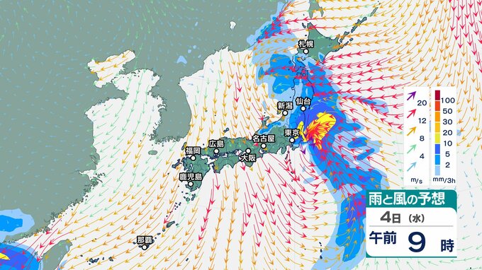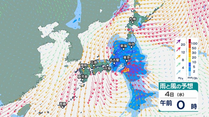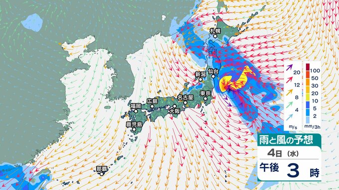 ニュースクリップ 【3日は荒天】九州南部で120ミリ予想、伊豆諸島も警戒、本州付近は気圧差が激しく全国的に強風 北日本は雪、多雪地では気温上昇によるなだれに要注意【雨と風のシミュレーション】 2026年3月2日(月) 11:55 国内 3月4日(水)雨と風のシミュレーション