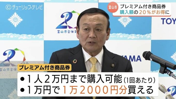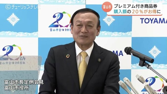 富山市の藤井市長は、国の交付金を財源としたプレミアム付き商品券の販売開始を明らかにしました。