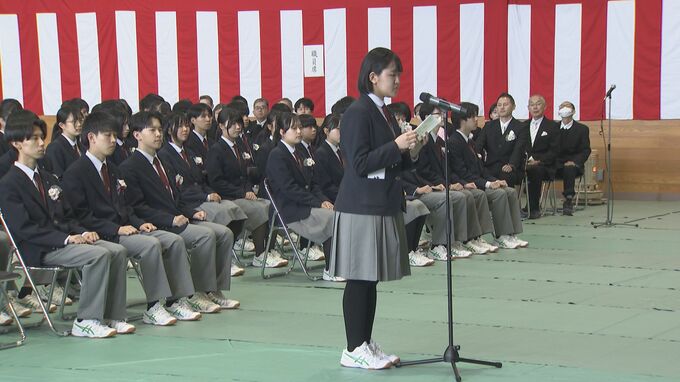 式では、生徒の代表に卒業証書が渡されたあと野々垣陽和さんが「めまぐるしい変化の時代に誠実に向き合いそれぞれの道を歩んでいきます」と決意を述べました。