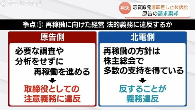 一方、北陸電力側は、「再稼働の方針は株主総会でも多数の支持を得ている」と反論していました。