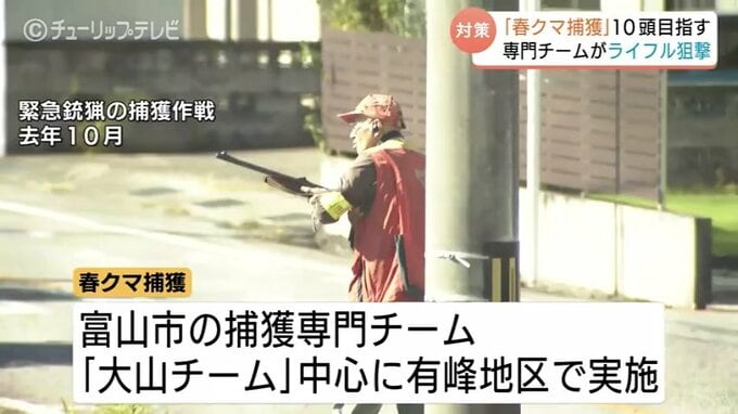 ニュースクリップ 「春クマ」をライフル射撃で10頭捕獲へ…県が初の捕獲作戦 去年の出没は過去10年で最多1059件 富山 2026年3月6日(金) 19:52 国内 クマの大量出没を受け、富山県は冬眠明けの春に出没する「春クマ」の捕獲に初めて乗り出します。捕獲専門チームが3月末から富山市の山間部でライフル狙撃を行い、10頭の捕獲を目指します。去年、全国で大量出没が…