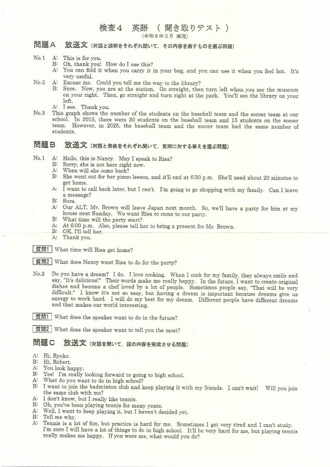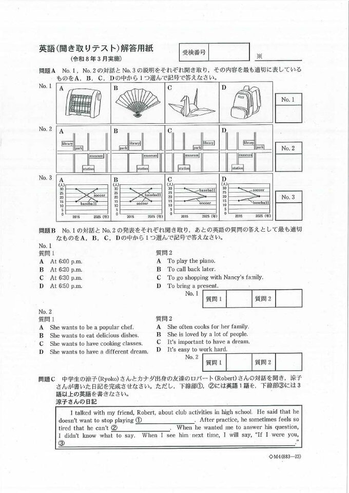 ニュースクリップ 【問題と解答】英語 2026年度県立高校入試 富山県 3月6日(金)【解説つき】 2026年3月6日(金) 19:20 国内 暮らし・マネー 2026年度県立高校入試【英語】問題と解答用紙 聞き取り ▶【国語】問題と解答 ▶【理科】問題と解答 ▶【社会】問題と解答 ▶【数学】問題と解答