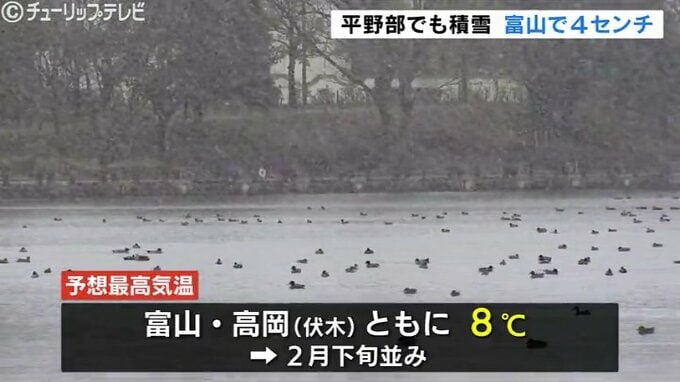 日中の予想最高気温は、富山・高岡市の伏木ともに8℃で2月下旬並みの寒さとなりそうです。