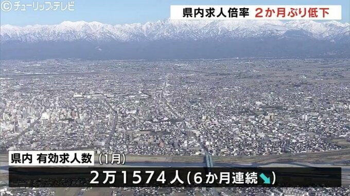 今年1月の富山県内の有効求人倍率は前月よりも0.01ポイント下がった1.47倍でした。有効求人倍率の低下は2か月ぶりです。