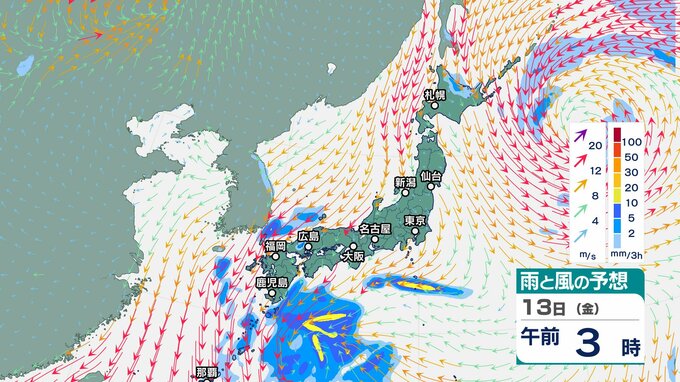 ニュースクリップ 【台風3号 発生】マリアナ諸島方面へ進む見通し…中心気圧1000hPa【気象庁】13日までに熱帯低気圧へ変わる見込み【雨と風のシミュレーション】 2026年3月11日(水) 16:11 国内 13日(金)の雨と風のシミュレーション