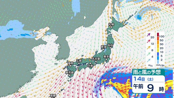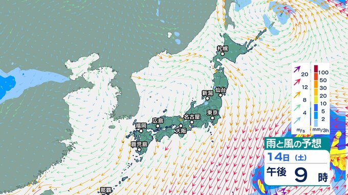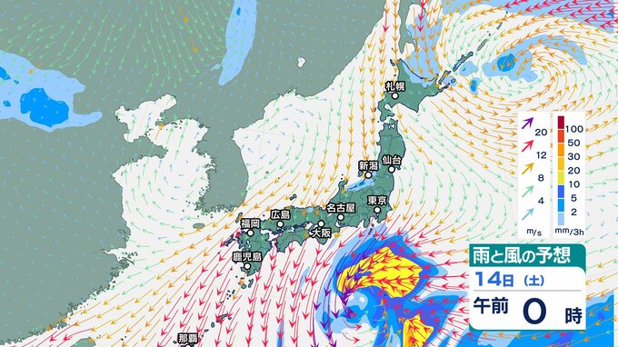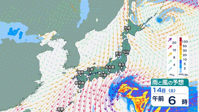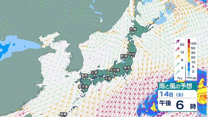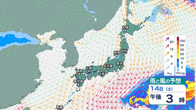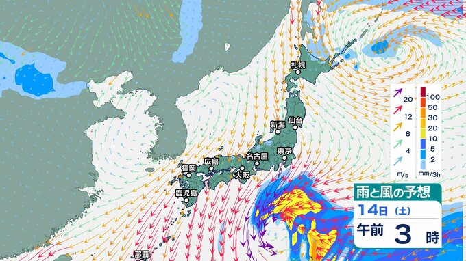 ニュースクリップ 【台風3号 発生】マリアナ諸島方面へ進む見通し…中心気圧1000hPa【気象庁】13日までに熱帯低気圧へ変わる見込み【雨と風のシミュレーション】 2026年3月11日(水) 16:11 国内 14日(土)の雨と風のシミュレーション