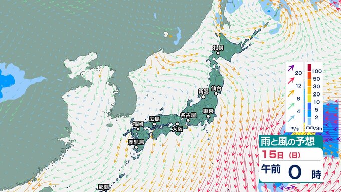ニュースクリップ 【台風3号 発生】マリアナ諸島方面へ進む見通し…中心気圧1000hPa【気象庁】13日までに熱帯低気圧へ変わる見込み【雨と風のシミュレーション】 2026年3月11日(水) 16:11 国内 15日(日)の雨と風のシミュレーション