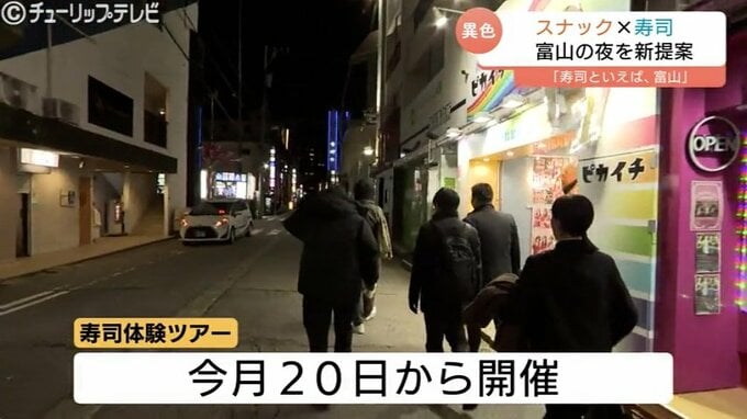 スナックと寿司を掛け合わせた、異色の体験ツアーは今月20日から開催されます。