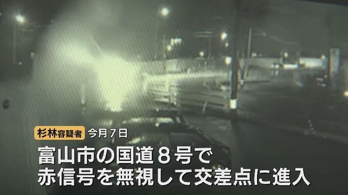 警察によりますと杉林容疑者は、今月7日の早朝、富山市の国道8号で、赤信号を無視して交差点に進入。軽乗用車と衝突し、運転していた上田絵莉加さん(38)と、息子の壮芽さん(14)を死亡させた疑いが持たれています。