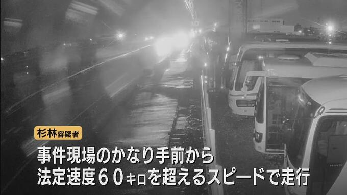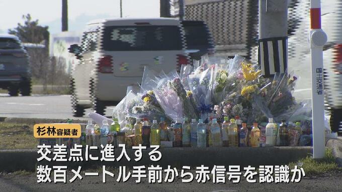 捜査関係者によりますと、杉林容疑者は事件現場のかなり手前から法定速度の60キロを超えるスピードで走行していて、交差点に進入する数百メートル手前から赤信号を認識していたとみられるということです。