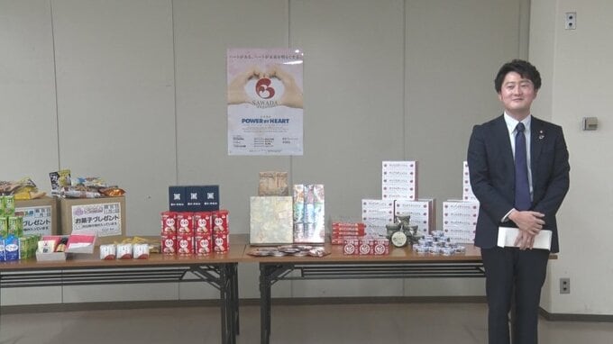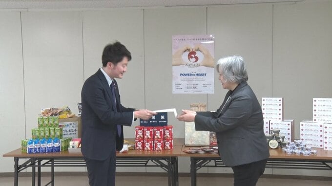 この活動は、澤田グループが毎年、取り組んでいるもので、贈られた品物はフードバンクとやまを通じてひとり親家庭の支援などに役立てられます。