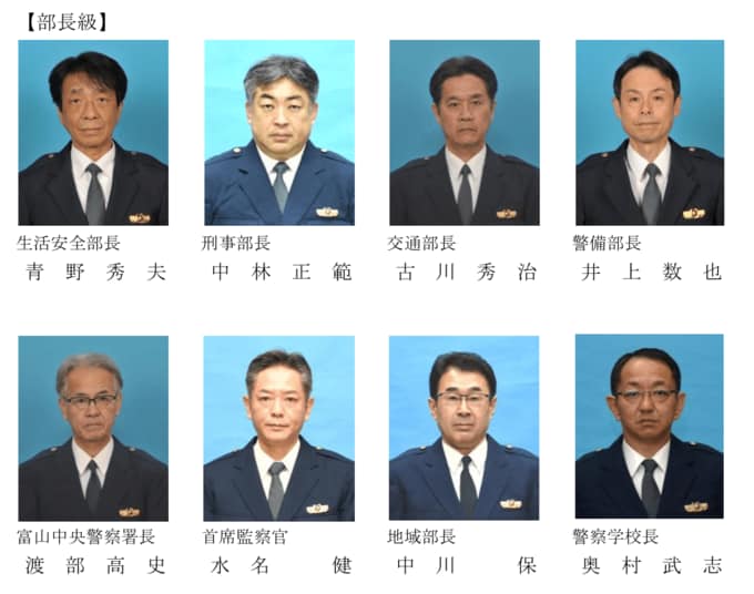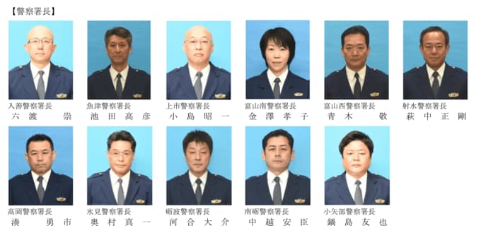 富山県警察本部は11日、春の定期人事異動の概要を発表しました。3月25日付で警視正及び警視級など826人の異動を実施します。(画像は敬称略)