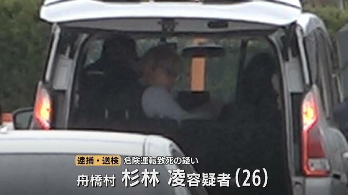 警察車両の後部座席にいるのは危険運転致死の疑いで逮捕・送検された杉林凌容疑者(26)です。