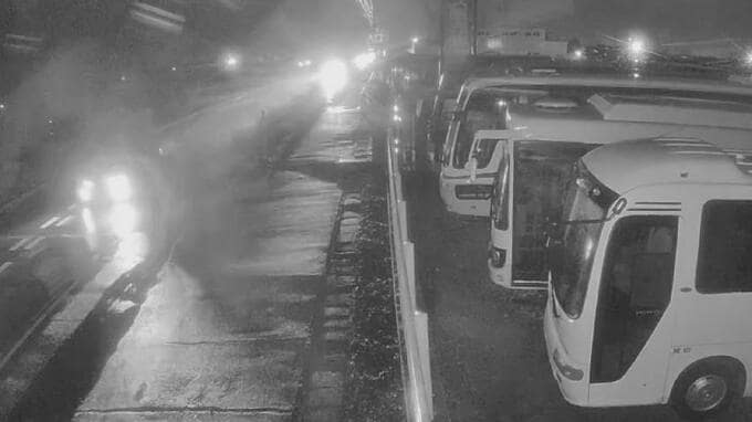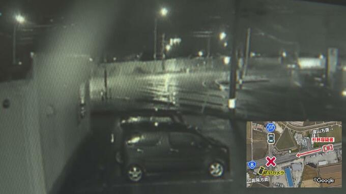 近くの事業所に設置された防犯カメラを再生すると、未明の国道8号に響き渡る衝突音が確認できました。