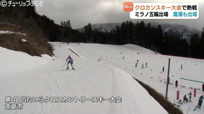 南砺市では15日、たいらクロスカントリースキー大会が行われ、ミラノ・コルティナオリンピックに出場した廣瀬崚選手などが熱戦を繰り広げました。