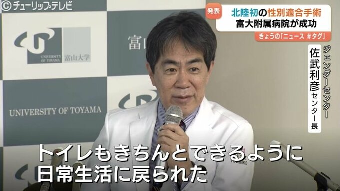 富山大学附属病院は16日、北陸で初めて性別適合手術を行い、成功したと発表しました。