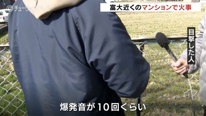 「富山市寺町の住宅街です。奥にあるこちらの建物、この4階から火の手が上がり、現場は騒然としています」