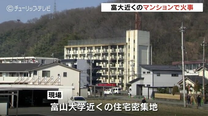 火事があったのは、富山市寺町にある6階建てマンションの一室です。警察などによりますとけさ8時50分ごろ、「4階のベランダから炎と煙が見える」と現場近くにいた人から消防に通報がありました。